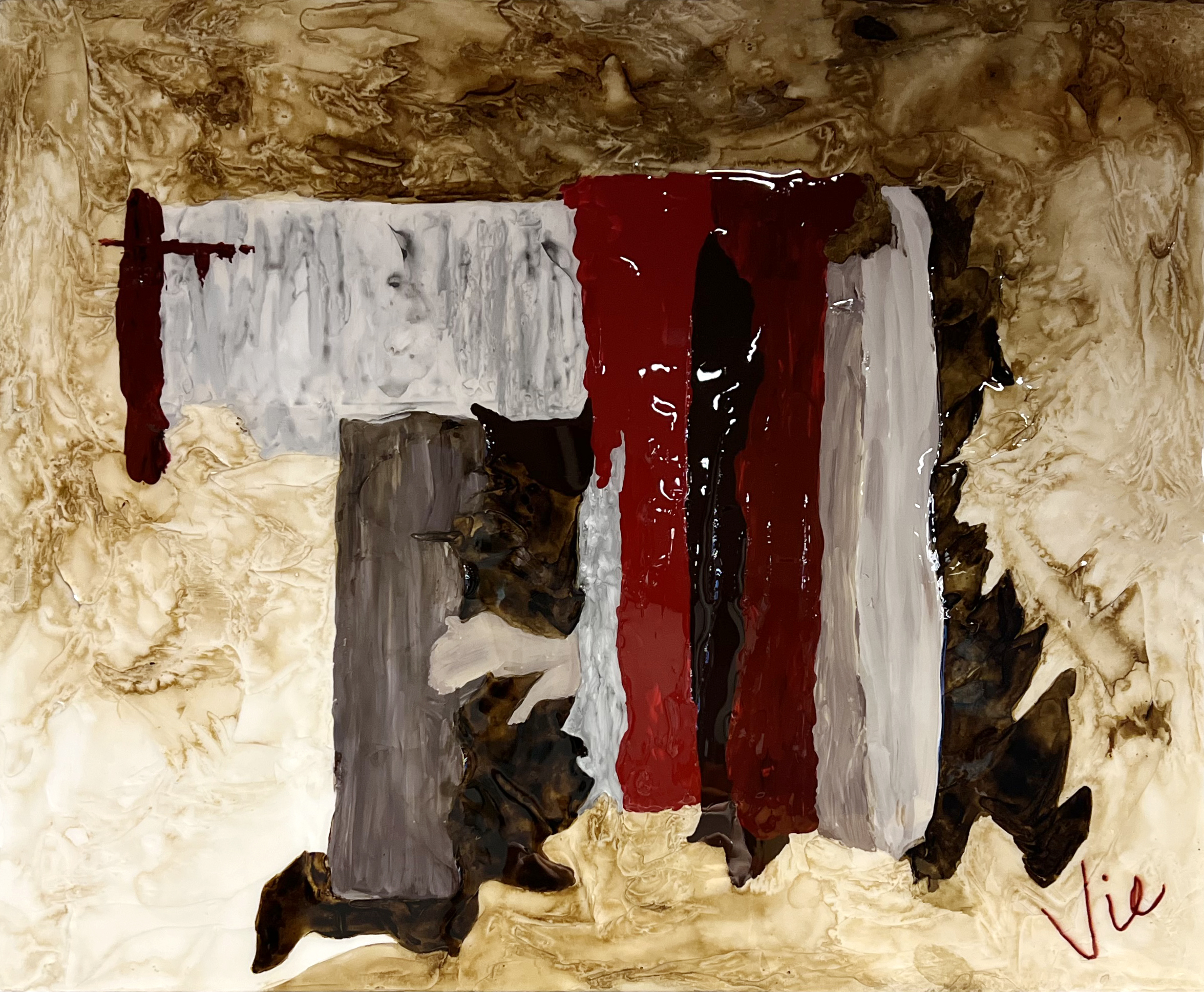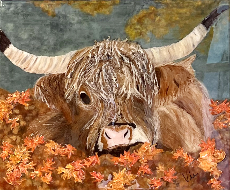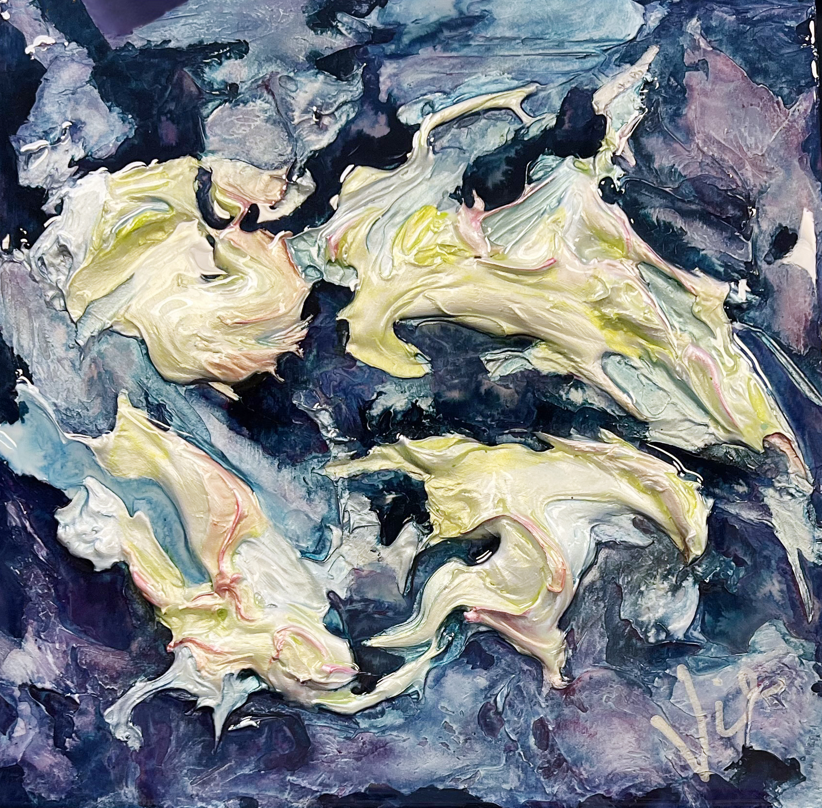 C’est en 2025 que je reprends mes pinceaux aux côtés de l’artiste et professeure de peinture France Bolieu. Un bref passage par l’huile avant de m’ouvrir aux encres acryliques sur fond texturé. Rapidement ce sont les animaux et l’art abstrait qui ont ma préférence.