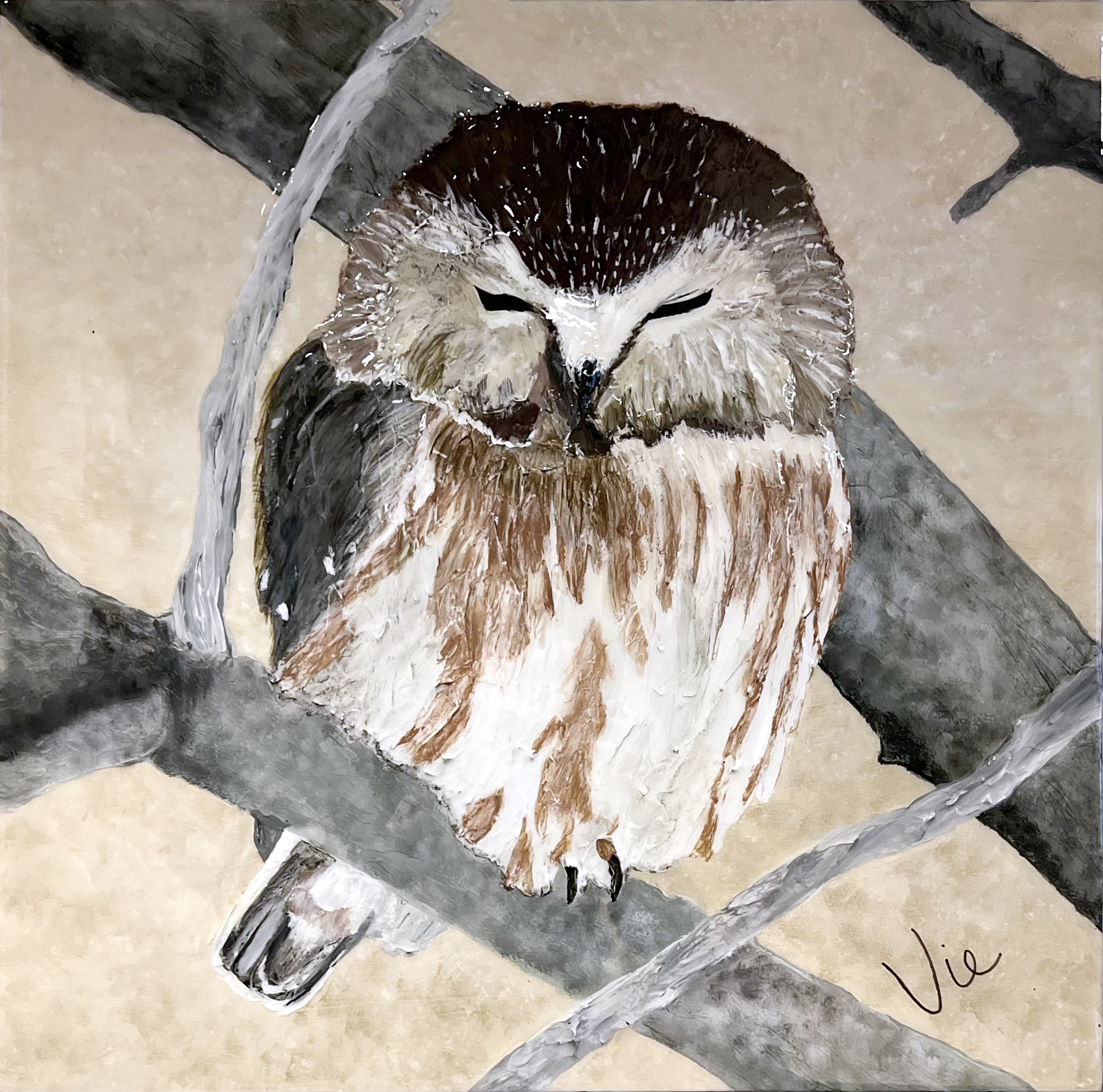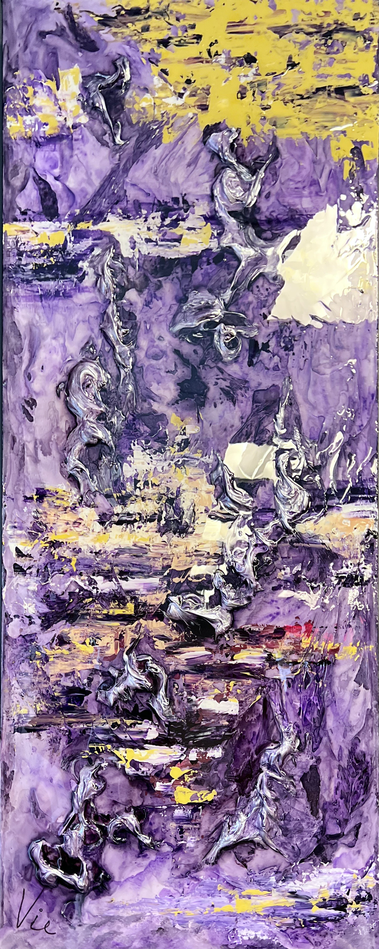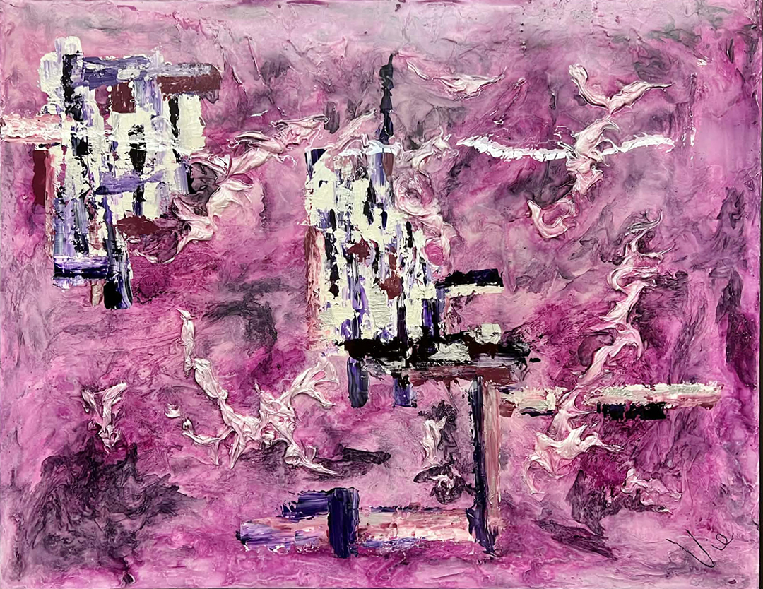 C’est en 2025 que je reprends mes pinceaux aux côtés de l’artiste et professeure de peinture France Bolieu. Un bref passage par l’huile avant de m’ouvrir aux encres acryliques sur fond texturé. Rapidement ce sont les animaux et l’art abstrait qui ont ma préférence.